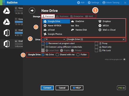 2. เราเลือกค่ายบริการ Cloud Drvie ที่เราใช้บริการอยู่ เช่น Google Drvie , One Drive, Dropbox box.net เป็นต้น